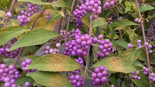ムラサキシキブ(コムラサキ)は、秋の庭を彩る美しい紫色の実が魅力的な植物です。