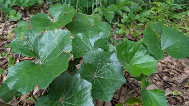 ツワブキの葉は常緑で一年中美しいのが大きな特徴です。直径15~30cmほどの円形から腎臓形の葉は、表面に美しい光沢があり、厚くしっかりとした質感を持っています。